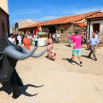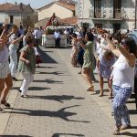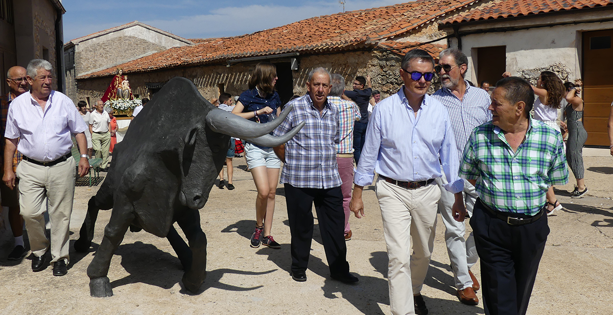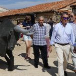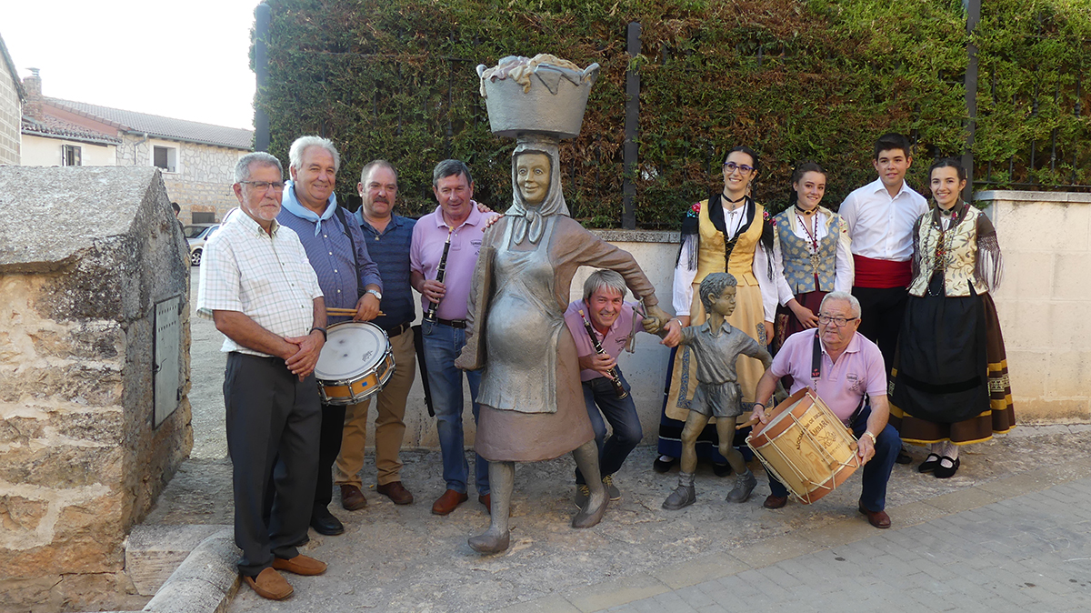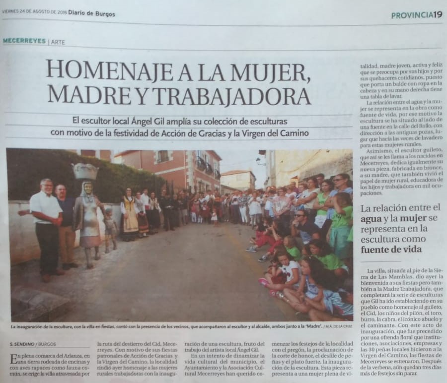 Al son de dulzaina autoridades y corte de honor se desplazó hasta la calle del Rollo para inaugurar una nueva estatua obra de Ángel Gil, ésta que es la octava que el artista local ofrece a Mecerreyes, representa a las MADRES TRABAJADORAS del mundo rural, jóvenes, felices, al cuidado de los pequeños y de las tareas del hogar como es el caso de esta lavandera dirección a las antiguas pozas. El agua y la mujer como fuente de vida.