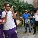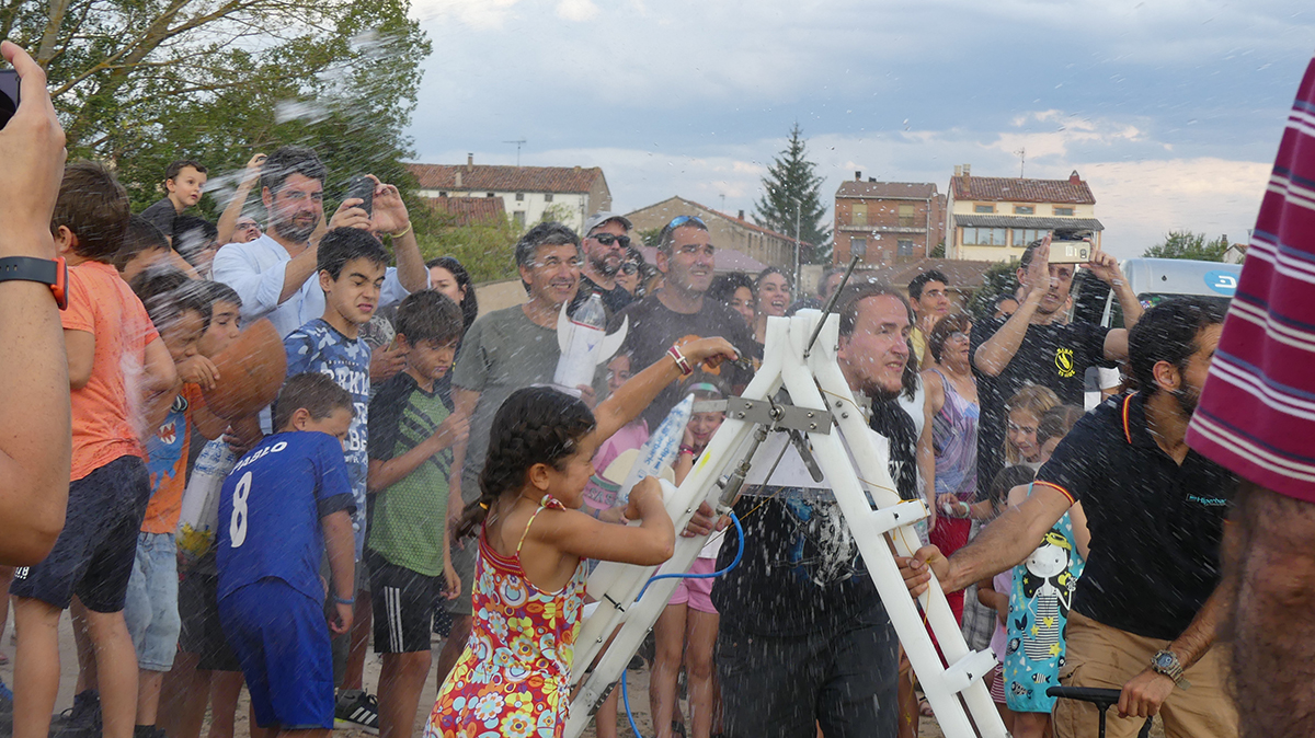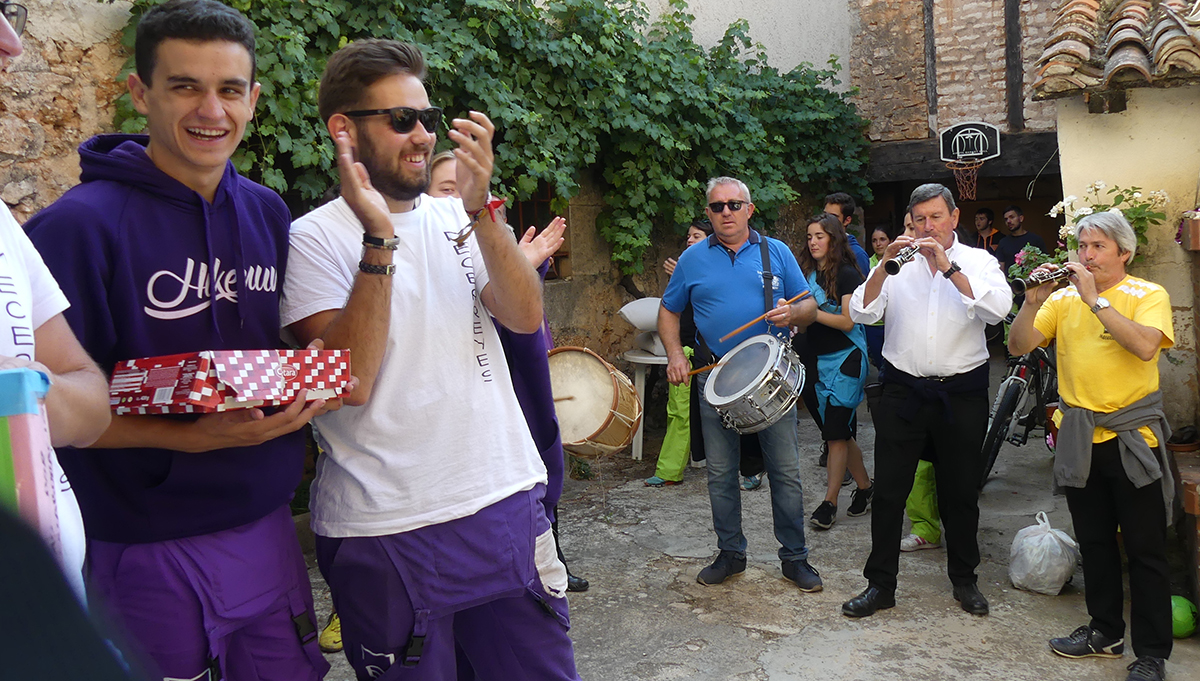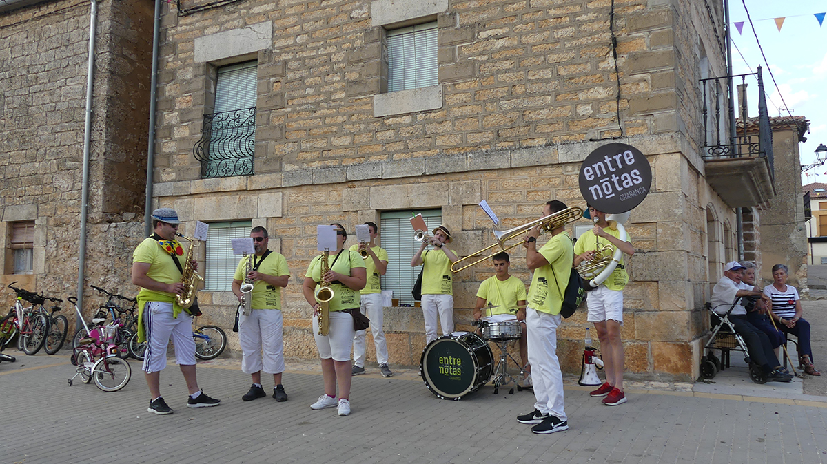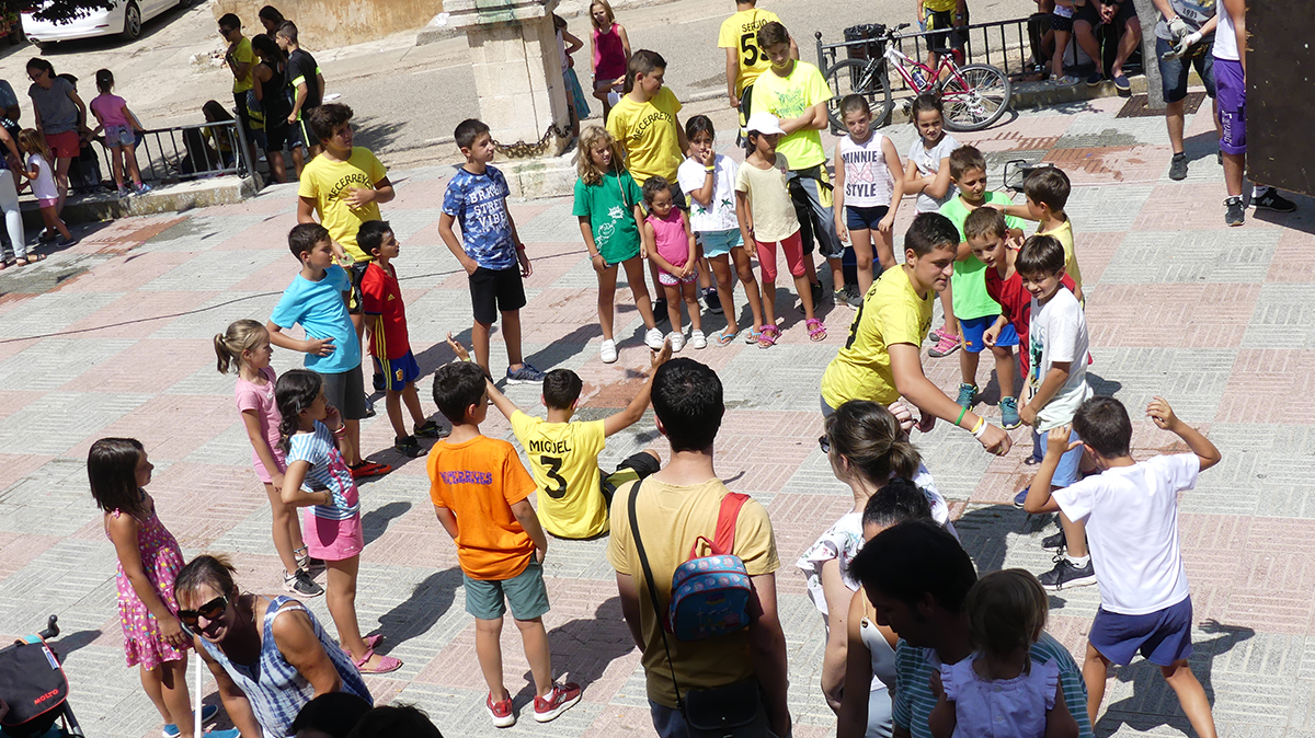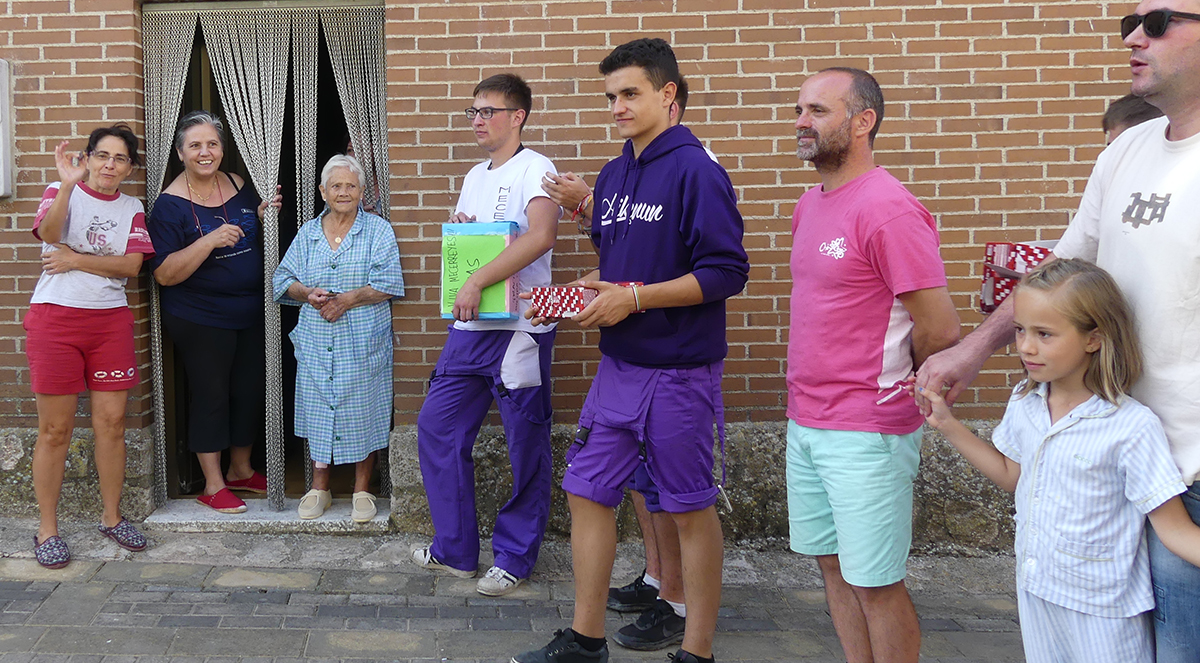 Público en el frontón para ver el torneo de frontenis, mucho público acompañando el taller de cohetes que luego se harían despegar en las eras de las pozas, mucho público también bailando al son de la charanga Entre Notas, actos todos que fueron reuniendo a los miembros de las 31 peñas que ya este miércoles se enfundaron su peto y camiseta de peña.