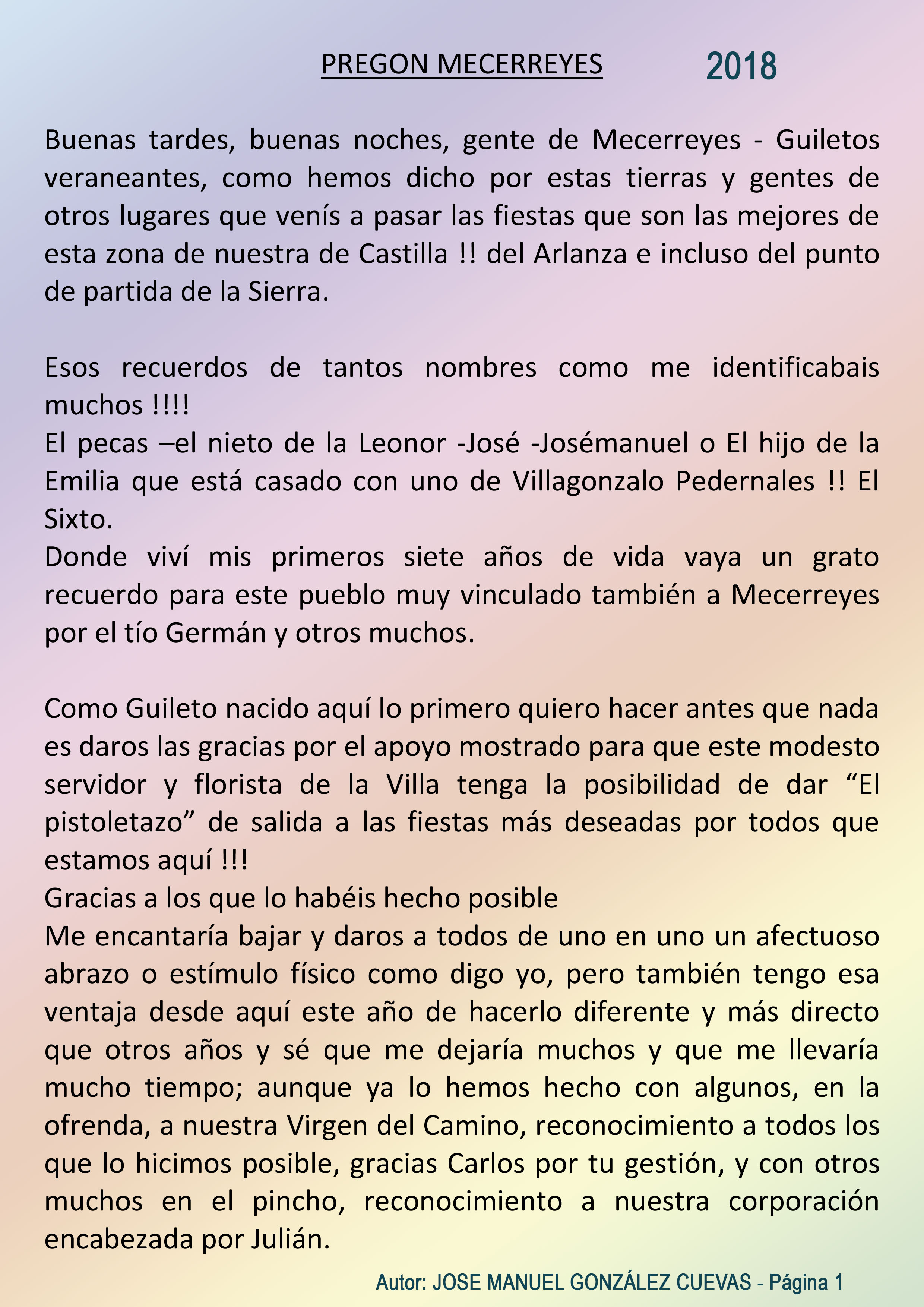 PREGÓN DE FIESTAS – Autor: Jose Manuel González Cuevas