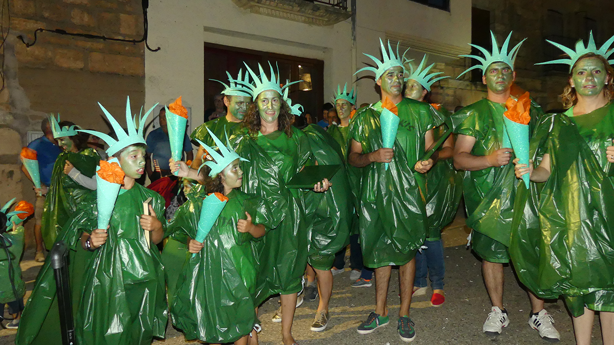 No defraudó la imaginación y alegría reinante en el desfile de peñas, la temática este año era países y nacionalidades.