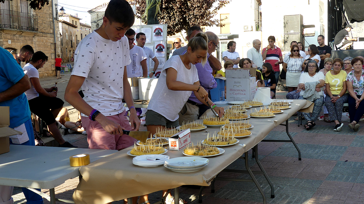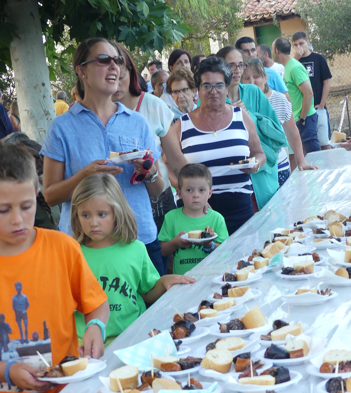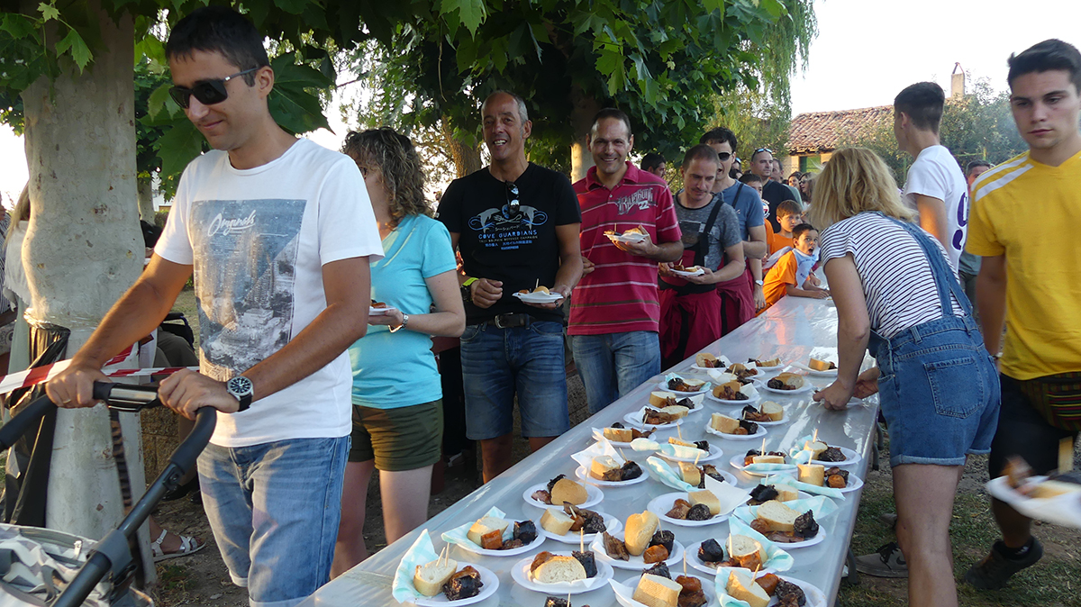 El pincho popular gentileza del Excmo. Ayuntamiento, sacó de sus hogares a todo el mundo, cola larguísima para degustar los productos locales de Embutidos Las Mamblas.