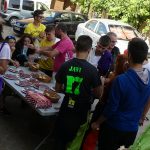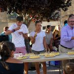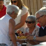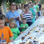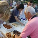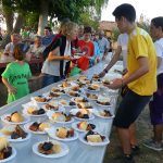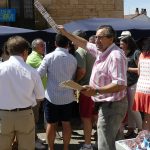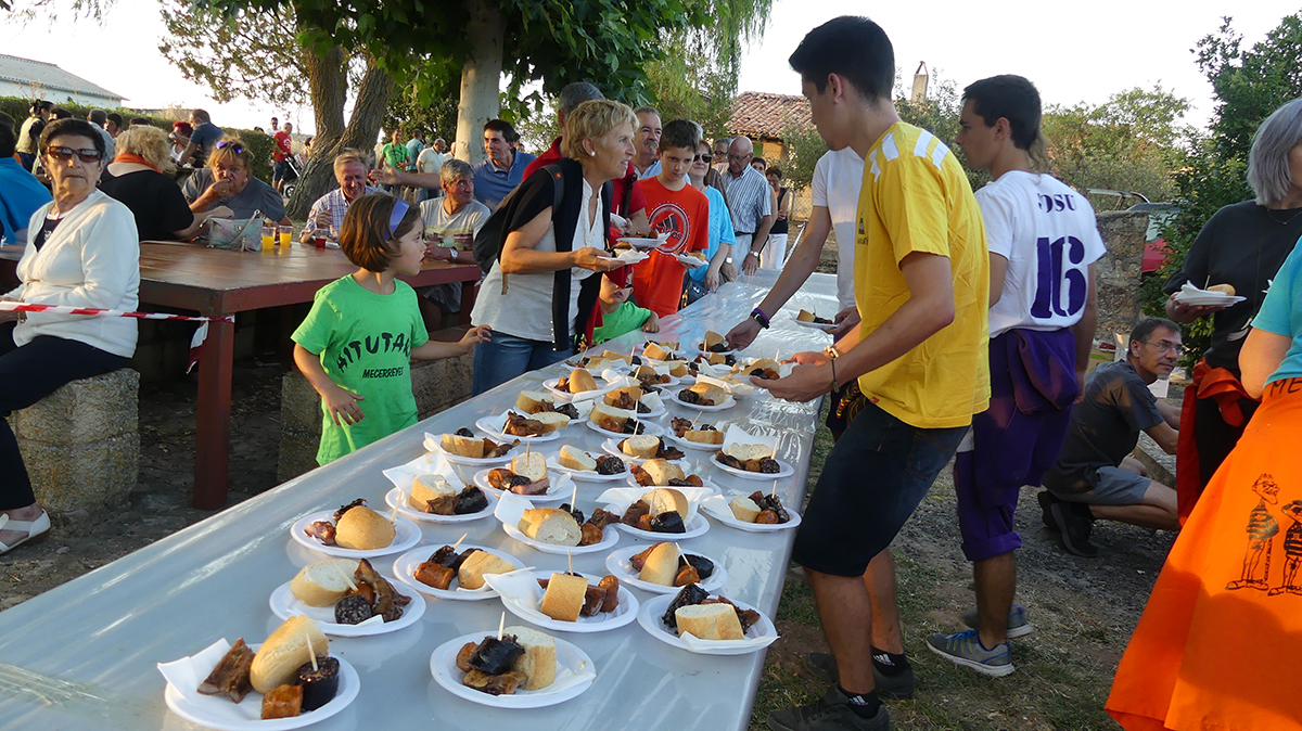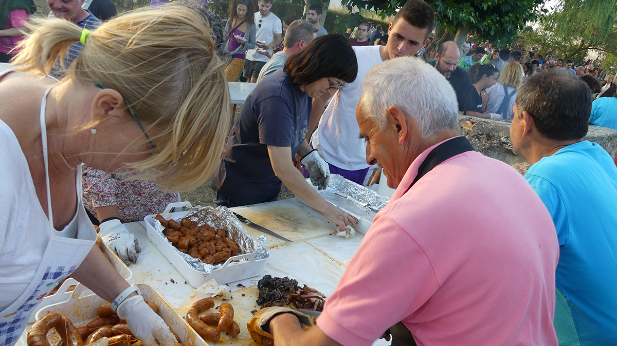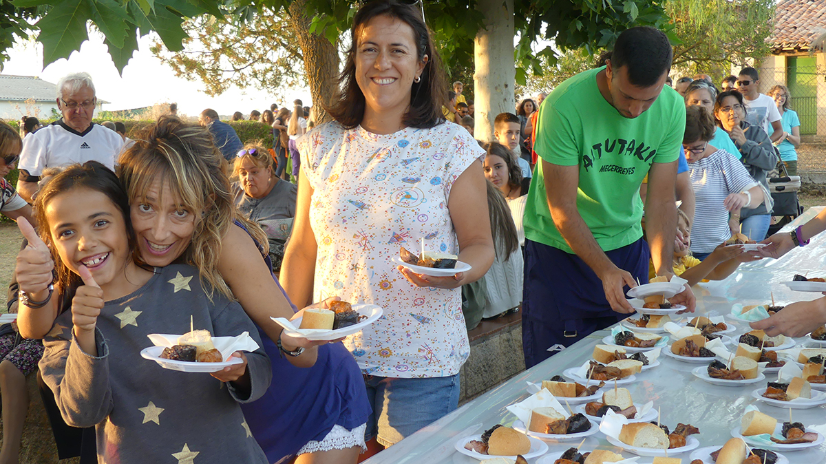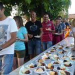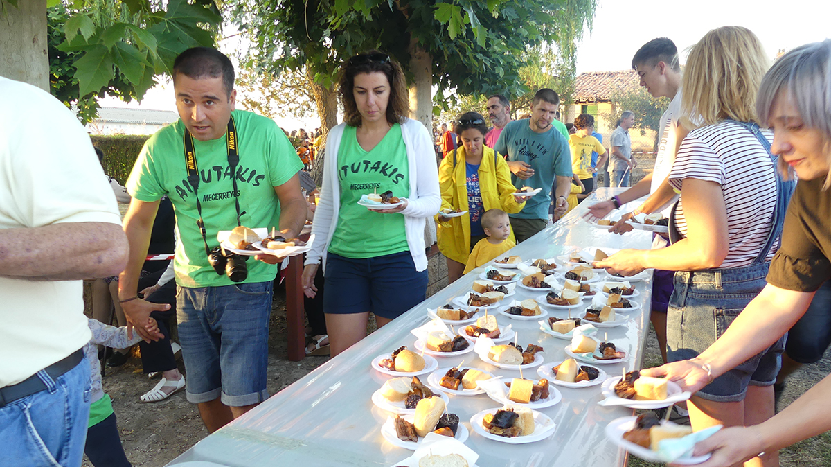 El pincho popular gentileza del Excmo. Ayuntamiento, sacó de sus hogares a todo el mundo, cola larguísima para degustar los productos locales de Embutidos Las Mamblas.