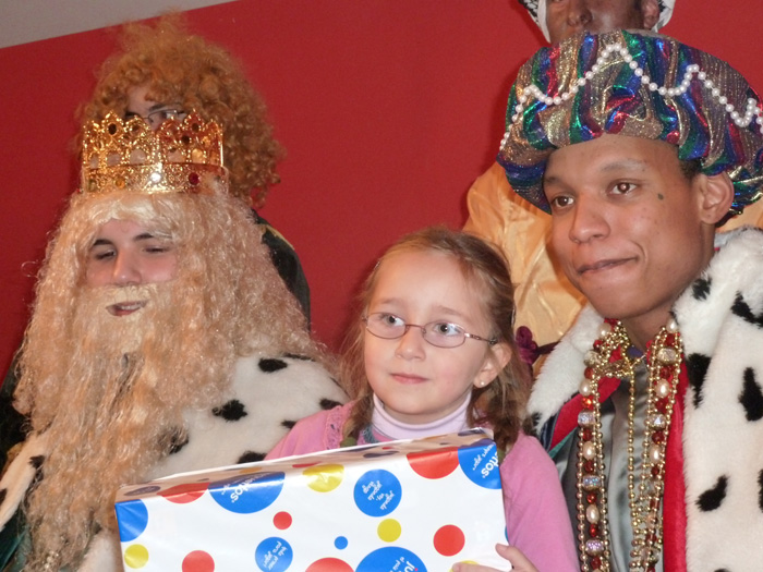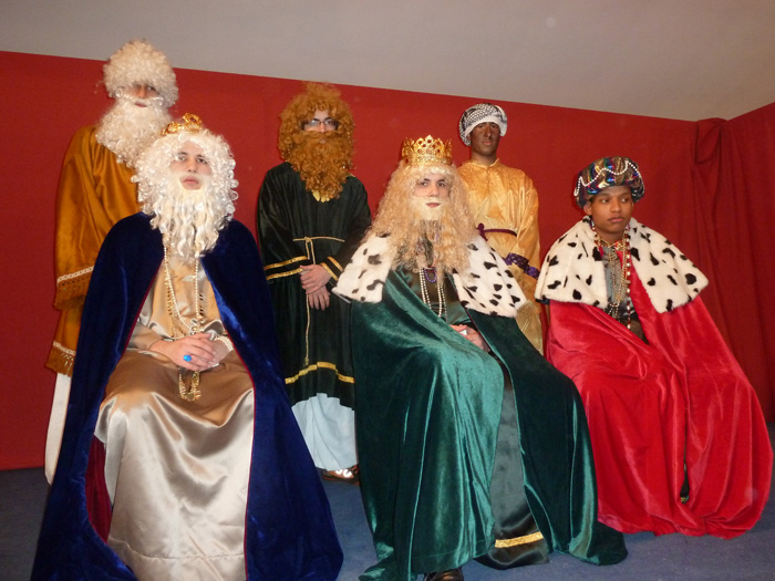 Hasta última hora no supimos si iba a salir la cabalgata o no, con novedades este año. El mal tiempo la hizo peligrar. Al final, con más de media hora de retraso salió. La emoción de los niños y la ilusión de todos pudieron con el frío, el viento y la lluvia. Tras un recorrido en la carroza los Reyes Magos llegaron al Portal de Belén, este año instalado en la cancela de la Iglesia. Allí adoraron al Niño y le ofrecieron sus regalos. Después nos bajamos al Ayuntamiento donde los niños recibieron de manos de Sus Majestades los regalos que habían traído para ellos. Al final un chocolate nos permitió confraternizar un buen rato.
