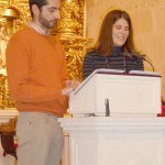 En la Misa del domingo 26 tuvimos la renovación de las promesas matrimoniales y familiares; fue un momento muy bonito, sobre todo para los matrimonios. Además nos acompañaron Alicia y Sergio, que quisieron responder a la invitación que les había hecho la Parroquia, de hacer el ya tradicional homenaje a los matrimonios jóvenes. Se les hizo entrega de una Biblia y una vela que simbolizaba la unión y la luz de la gracia de Cristo que han recibido a través del sacramento del matrimonio. Además toda la ceremonia estuvo animada por el grupo de la revista que cantaron villancicos populares y alguna pieza de la misa castellana. El domingo 2 de enero volverán a animar la Eucaristía.