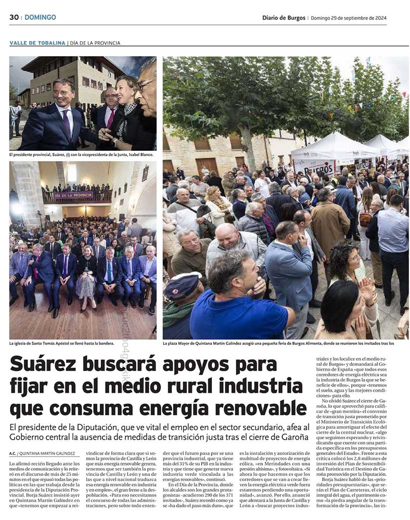 El pasado 29 de septiembre Diario de Burgos se hizo eco de la celebración que acogió Quintana Martín Galíndez con motivo del Día de la Provincia.