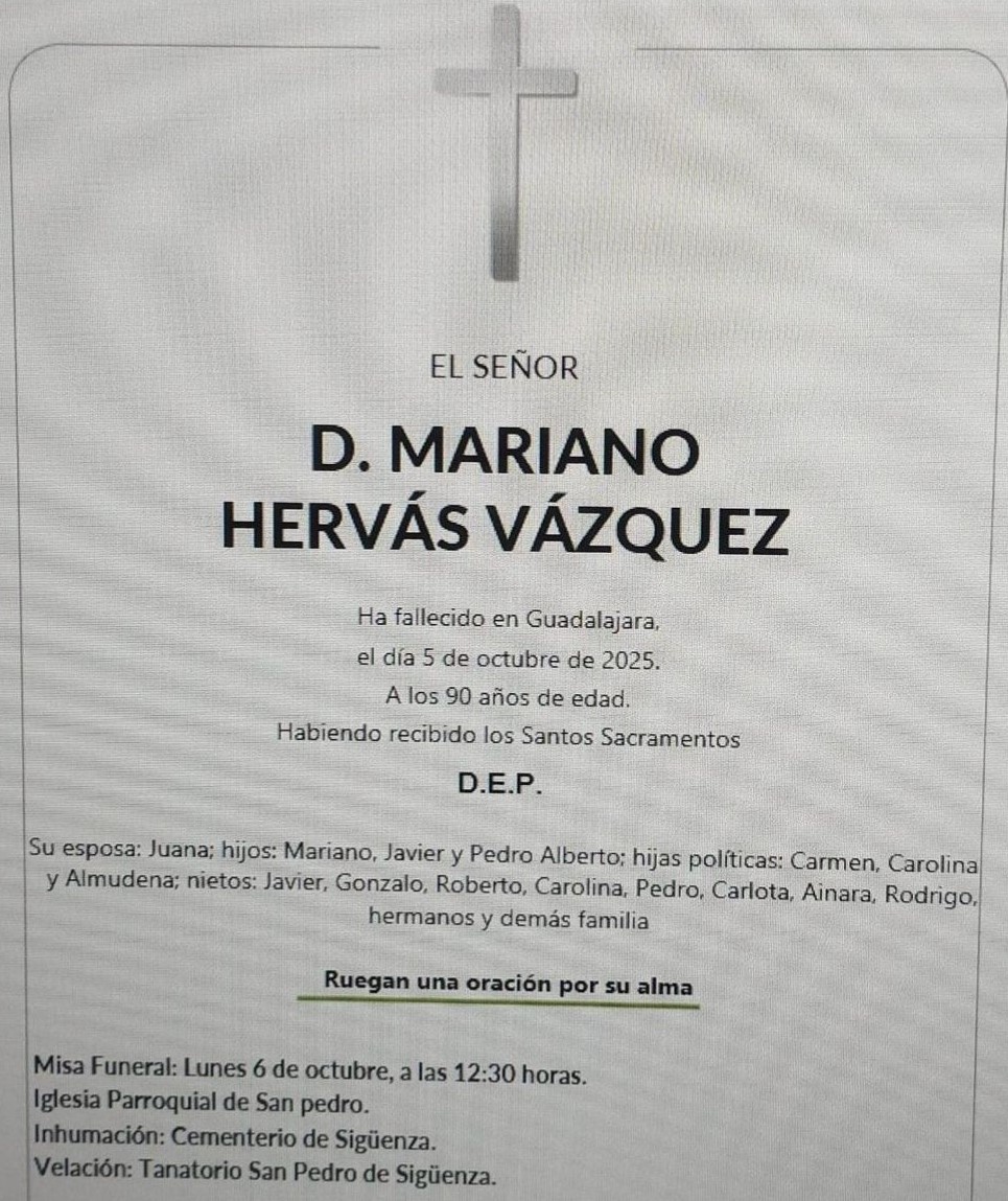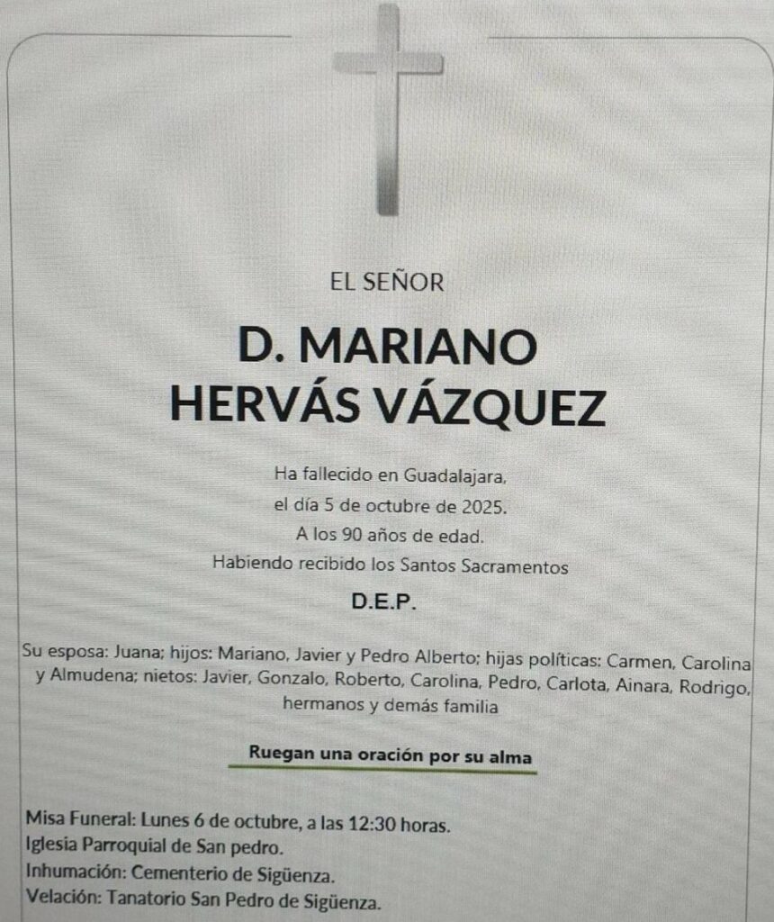 D. MARIANO HERVÁS VÁZQUEZ falleció en Guadalajara el día 5 de octubre a los 90 años de edad. Descanse en Paz.
