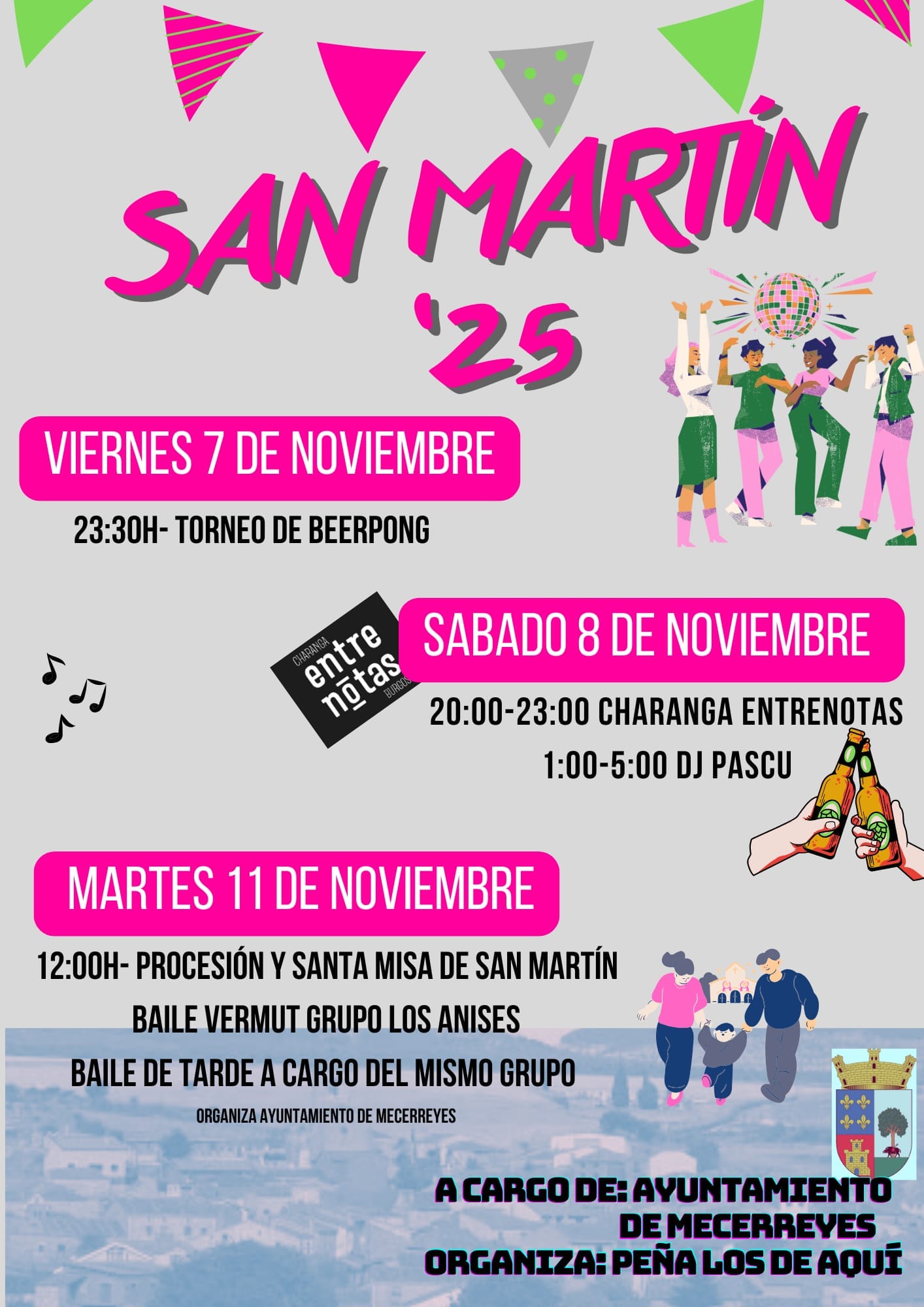 El día 8 de noviembre comienzan las celebraciones de las fiestas patronales en honor a San Martín. A iniciativa de la Asociación de Jubilados está organizada una comida para todos los públicos en el Mesón de Frutos.