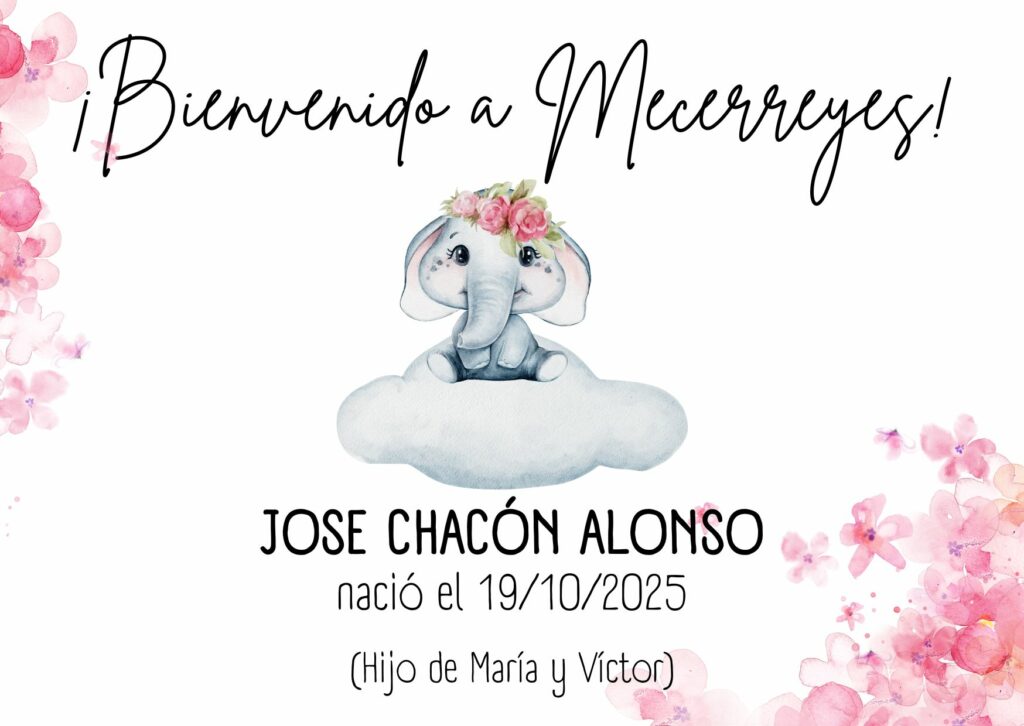 El pasado 19 de octubre de 2025, Víctor Chacón Jordán y Mª Jesús Alonso Barrio dieron la bienvenida a JOSE, Enhorabuena para estos jóvenes que han decidido que su pequeño disfrute su infancia en Mecerreyes.