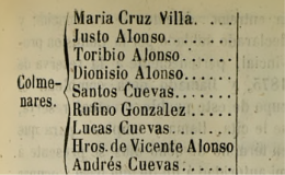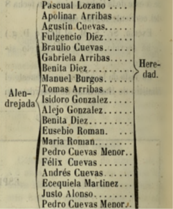 El que se tome la molestia de repasar las listas de propietarios puede encontrar alguno de sus antepasados ( a nivel de tatarabuelos o retatarabuelos). Yo concretamente he encontrado al menos cuatro (Vicente Arribas, Basilio Alonso, Pedro Cuevas y Rufino Gonzalez)