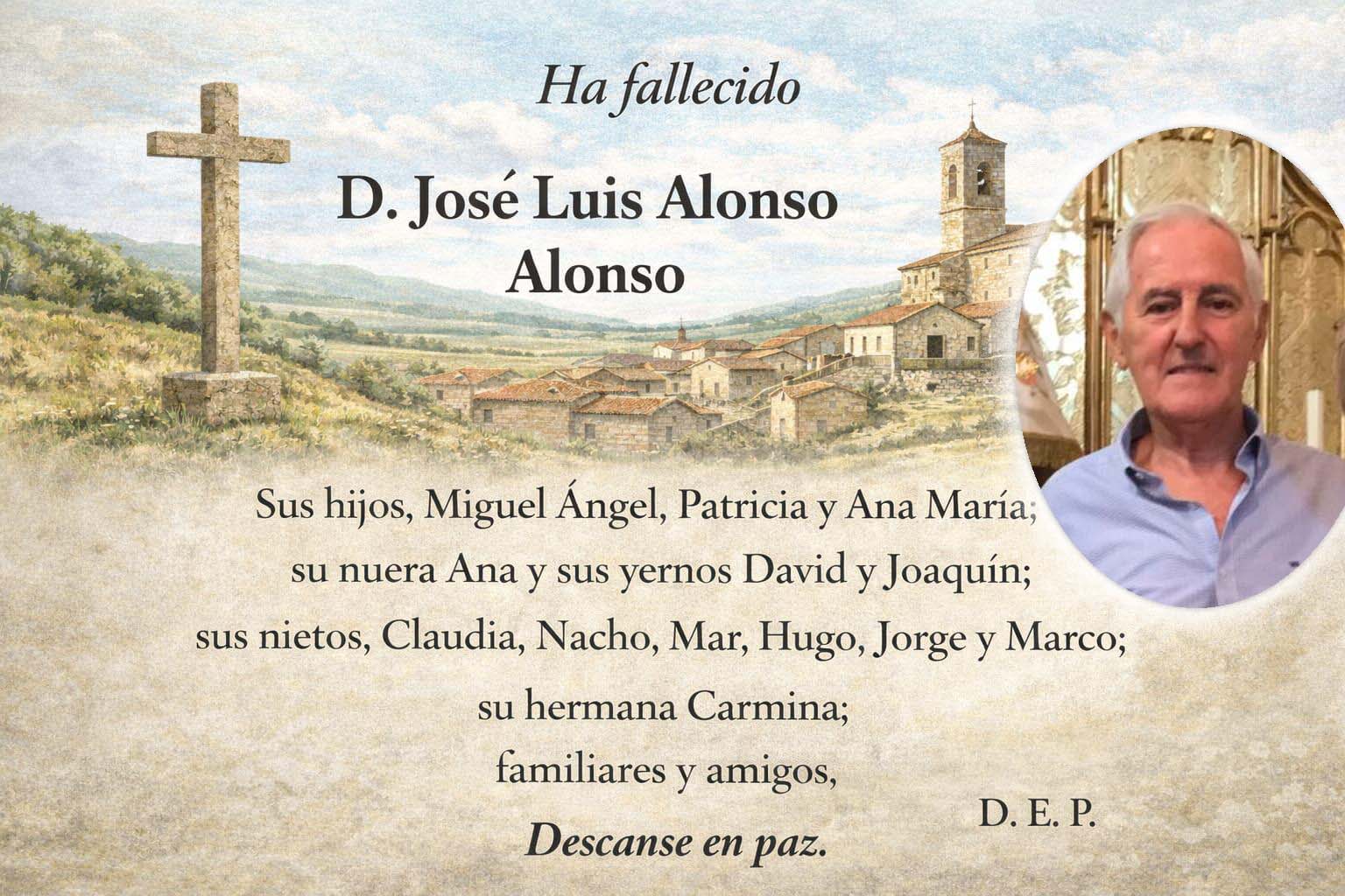 D. JOSE LUIS ALONSO ALONSO, falleció el 17 de febrero a los 83 años de edad, su familia agradece las múltiples muestras de condolencia. Descanse en Paz.