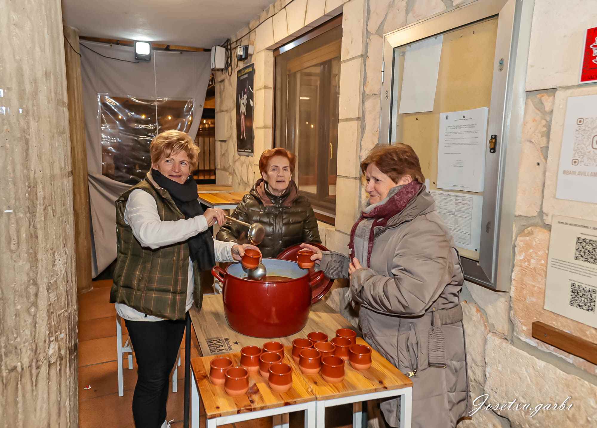 Puntualmente se encendieron las hogueras a las 12:00 h, cantamos como manda la tradición, (resaltar y agradecer el silencio con el que se cantaron y escucharon las coplas, a pesar del gran número de público que nos acompañó) y nos reconfortamos con las exquisitas sopas de ajo que nuestras abuelas ofrecieron a los presentes.