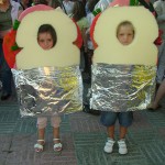 Por la tarde muchísimos niños fueron disfrazados a la plaza. La gente mayor se conformó con oír, ver…, y gritar. Romanos, novios, fregonas, sándwiches, pintores, princesas…, y todo lo que os queráis imaginar: hasta de infusiones hubo algún valiente.