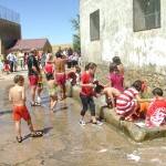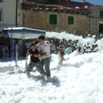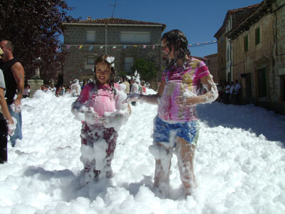 Después… LA FIESTA DE LA ESPUMA!!!!!!! ¡Hala, a llenarse de…! Y luego los graciosos a dar abrazos a la gente seca. Divertido como pocas cosas hay. Sobre todo la sustitución de la piscina por el pilón: los largos, los aclarados… El caso es que se quedó sin agua.