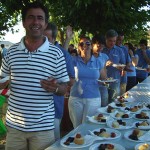 Después bajamos en pasacalles hasta el parque donde todo el pueblo estaba a la espera del pincho, acto ya popular y arraigado en estas fiestas. Se repartieron más de 1200 raciones consistentes en un pincho de chorizo, careta, morcilla, pan y bebida a elegir entre refresco o vino. La gente disfrutó de lo lindo de las viandas ofrecidas y preparadas por los voluntarios de siempre.